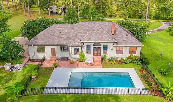 Your Private Retreat is tucked away in the Hidden Springs community located close to the Florida/Georgia state line. This beautiful home is nestled on 17.5 acres of gorgeous pines and hardwoods with a spring fed pond in your backyard that is loaded with bream, catfish and bass, ready for swimming or boating. Enjoy taking a dip or sunning in your pool added in 2020, with sun shelf and bubblers. Love to garden? Well, there is a fenced in garden area and fruit trees galore. The variety of fruit trees are orange, tangerine, kumquats, pomegranate, fig, plum and pear bartlett not to mention the wonderful flowering plants surrounding the pool and yard. Want to add animals? With the 17.5 acres I think you will find plenty of room. There are two entrances to the property if you would care to add a barn or other homes for family or friends. Main entrance is of course off of Covey Rise and the other at the very end of Hidden Springs Rd on the very south side of the property. There is also a large carport with a hook-up for any size Recreational Vehicle. Workshop is 20 x 40 built in 2018 on a concrete slab electrically wired with carport in rear that will accommodate a small tractor. There is also a dog kennel with chain link fence and covered area also an additional storage building with a lean-to for boat and mowers. Let's go check out the warm and inviting home! It was built in 1993 with half-brick flooring and half heart pine from a tobacco warehouse which adds such a unique touch. It has an open floor plan with 10 ft ceilings, 2 cozy woodburning fireplaces, one in the great room and the other in the primary suite. The kitchen was remodeled in 2018 with all stainless-steel appliances and butcher block island. There is an informal and formal dining room, a great room and private living room, 3 bedrooms and 3 bathrooms all with stunning views of your private retreat! A must see!