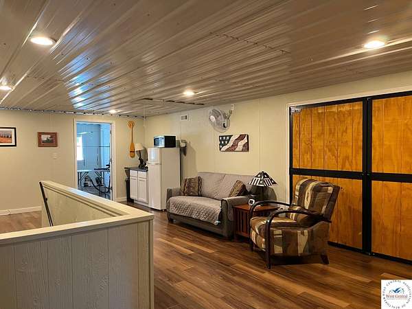 Beautiful Shouse located in western Benton County, just 4 miles to Truman Lake. So much to offer with this 2 story, 3 Bedroom and 2 bath home. The spacious layout of the living area is over 2900 square foot and has 2 master suites. The main level has a large kitchen with a large island, dining room, living room, master suite leading out to a patio, laundry room and easy entrance to the massive garages. The living room has had all 10 windows professionally tinted to keep you cool in the summer. The upstairs features a family room, a second bedroom and the second master suite leading out to the balcony with stairs to the patio below. With 2 large garages (58'x15' and 58'x13') you will have room for parking a bus, pontoon, or several vehicles. There are two additional sections on the back of the home that can be used for storage or turn them into your workshop. The garages are heated by a Heatmor outdoor wood furnace, which if you choose can also be used to heat the living areas. This much living space and massive garages minutes to the lake are a rarity you don't want to miss out on!