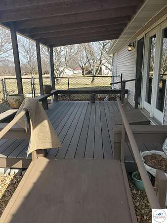 This is a well maintained and beautiful home. This has 3 bedrooms and 2 baths. Kitchen has custom oak cabinets and granite counter tops and is an eat in kitchen. Home has a large living room, with a fireplace, and opens to a covered, updated, 10x16 deck on the back. Home has a covered 12x23 covered front porch. There is a full unfinished basement with a newer water forced sump pump and has a staircase to the 2-car garage also. Property includes a 30x48 detached garage/shop, with concrete floor and openers on both garage doors and also has a built-in office/man cave. property also include a 10x18 covered dog kennel, or could be finished into a utility shed. There are also handicap ramps from the garage and the front and back doors. Close to Sparrowfoot boat ramp and close to corp ground.