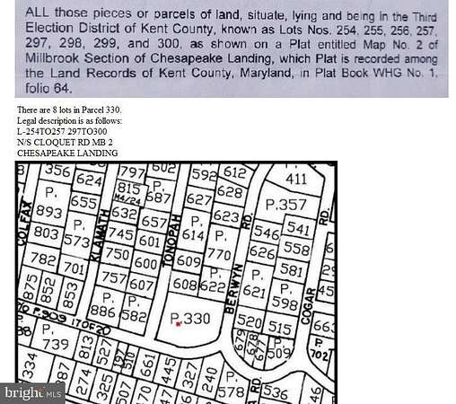 Est $323/moLargest privately held parcel in Chesapeake Landing. 8 Lots each more than 10,000 sq ft. for a total 1.51 acres. Tax map 27, lots 254-257 & 297-300 (2 contiguous lots). The site is level & wooded. Raw land near Worton's Marina. Community has a boat ramp and offers easy access to the Chesapeake Bay. Chesapeake Landing has a voluntary HOA giving you access to the boat ramp, marina and a slip for an extra fee. Owner planned to build a home on the land then decided to stay in PA. Beautiful property.