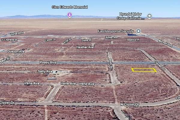 Est $148/moThis 0.27-acre residential lot in California City, Kern County, CA offers a peaceful environment with scenic open views! You'll be just minutes from California City Airport, Tierra Del Sol Golf Course, Central Park, and local favorites like Gloria's Mexican Restaurant and Primo Burgers. Your property is easily accessible via a dirt road that connects directly from a nearby paved road.
