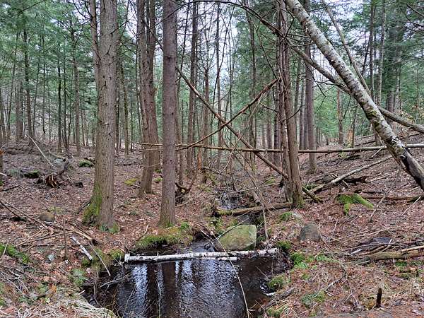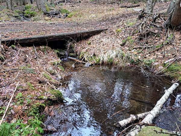 The Split Rock Forest Property is divided by a seasonal stream that terminates at the property line in a small wetland. This wetland *could* be developed into a small pond, which would add to the great features of the property.
