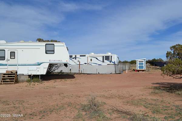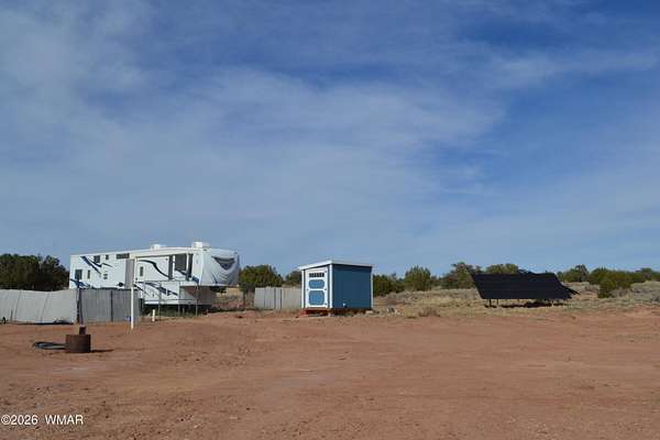 Beautiful parcel. Off-grid 10-acre property ready for your dream home! Live comfortably in two fifth wheels.. RV's are attached to solar, water, septic and propane (rental tank). Partially fenced area for Horses or livestock., has a chicken coop and a fenced in garden. Multiple water spigots for access. Stunning views to the west and south, just 20 minutes from Snowflake. Seller open to all offers. Owner will carry with $30K down; terms negotiable. 40' Inferno KZ 3912 Toy Hauler 40' 1996 Savannah 14' 2013 Avenger AT1 (Primetime) Well Share Agreement is in Associated Document Tab Internal Photos of the Fifth Wheels will be available after the seller moves out, early June.