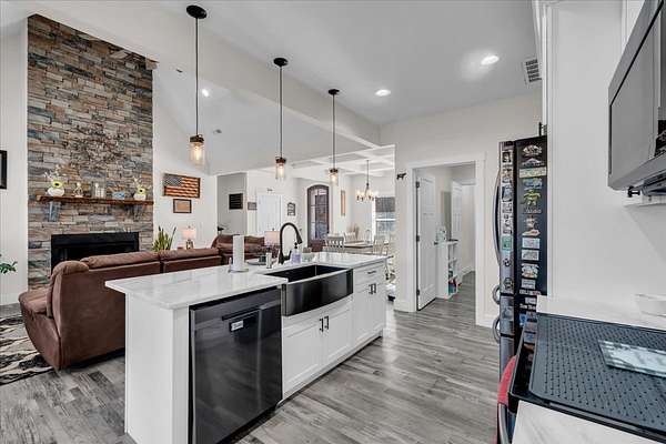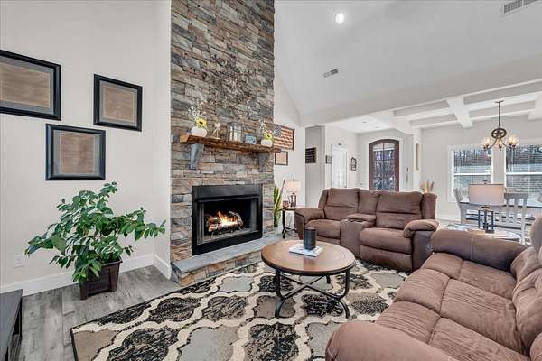Inside features include durable vinyl plank flooring, granite countertops, an open-concept living area, and a gas fireplace. The bonus room provides flexible space for a home office, gym, or media room.