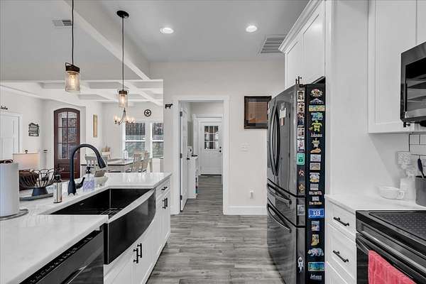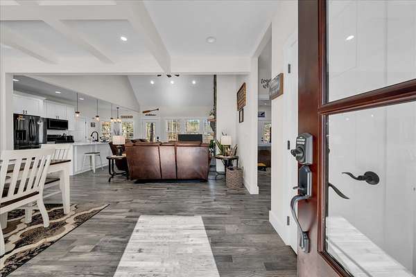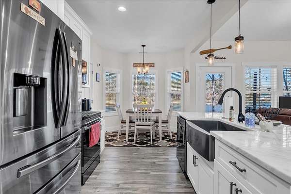 Step outside to enjoy direct lake access, wooded views, and a creek running through the property. Whether it's fishing, morning coffee on the porch, or evening walks on the neighborhood trail, the setting offers year-round enjoyment.