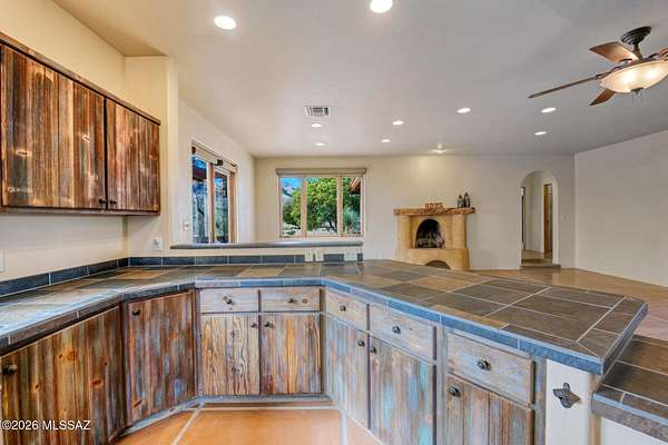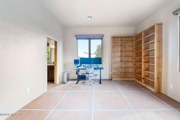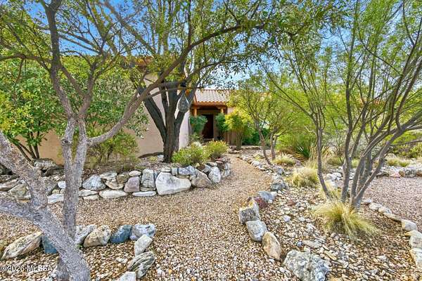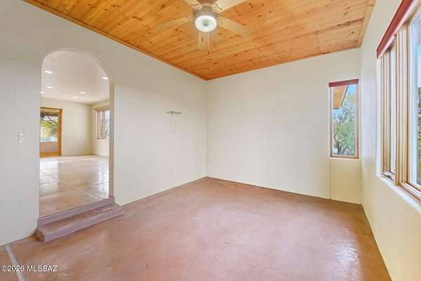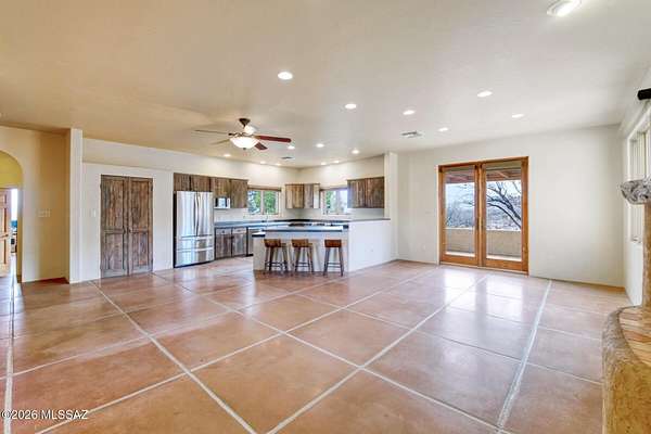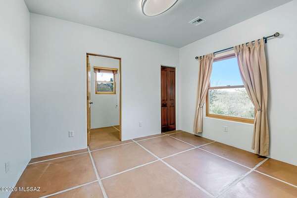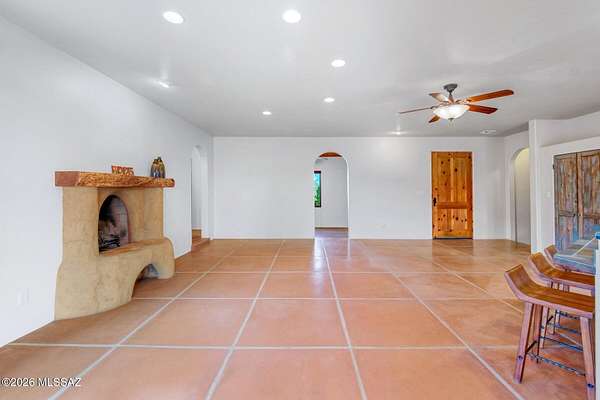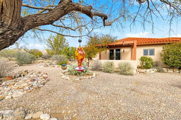 360-degree mountain views of the Cochise Stronghold surround this peaceful custom home on 10 acres, offering privacy, space, and a true connection to nature. The home features 3 bedrooms, each with a private bathroom, plus an additional half bath, making it ideal for full-time living or hosting guests. Inside, you'll find stained and scored concrete floors, solid wood cabinetry, recessed lighting, air conditioning, and a fireplace anchoring the main living area. A dedicated entertainment or bonus room provides flexible living space, while expansive windows capture sweeping mountain and desert views. Exterior features include a covered patio, tile roof, dual pane windows, 2-car garage, 2-stall barn, and a garden area, all set within a private, serene desert landscape. This property combines comfort, function, and wide-open High Desert living in one of Cochise County's most scenic settings. Property is zone RU-4 and is NOT in a Flood Zone.