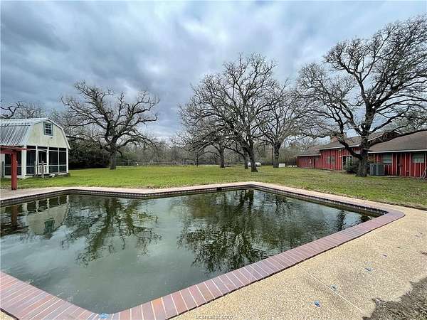 Located in the peaceful Pecan Valley Subdivision, this one-story home offers 2,706 sq. ft. of living space on 7 acres of picturesque country land. Enjoy the privacy and tranquility of rural living while being just a short drive from the vibrant heart of College Station, with its shopping, dining, and entertainment options. The home features 3 spacious bedrooms, 2 1/2 bathrooms, an office area, a formal dining room, and a grand living room that's perfect for entertaining. The open kitchen offers a double oven and plenty of counter space and storage. Throughout the home, generous storage options ensure everything has its place. Step outside to your own peaceful retreat, with 7 acres of land adorned with large and medium trees, offering opportunities for gardening, outdoor activities, or simply relaxing. Additional exterior features include an in-ground pool, a 40x50 barn, Generac system, and a front porch with beautiful sunrise and sunset views. Whether you're looking for a quiet escape or a home with room to grow, this property in Pecan Valley Subdivision is the perfect blend of comfort, space, and convenience. Call today to schedule your showing!