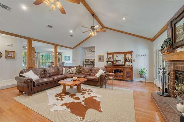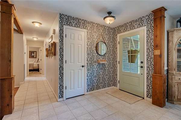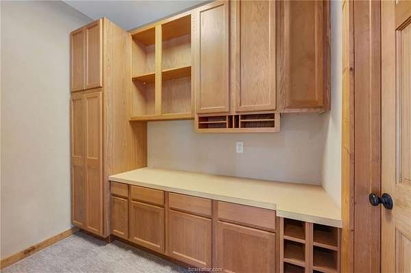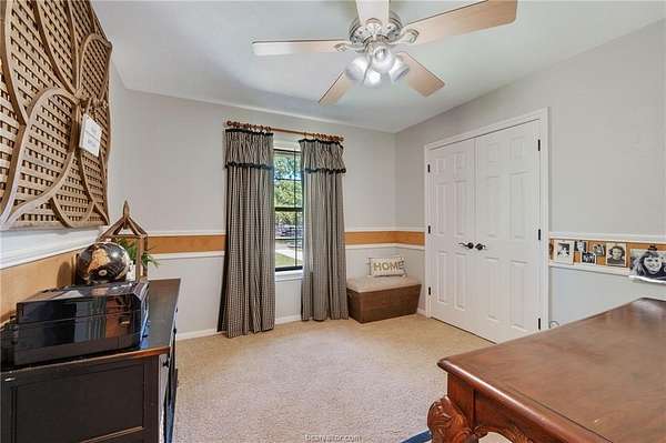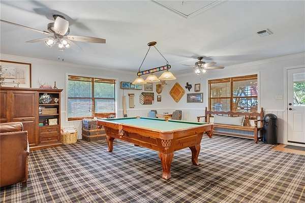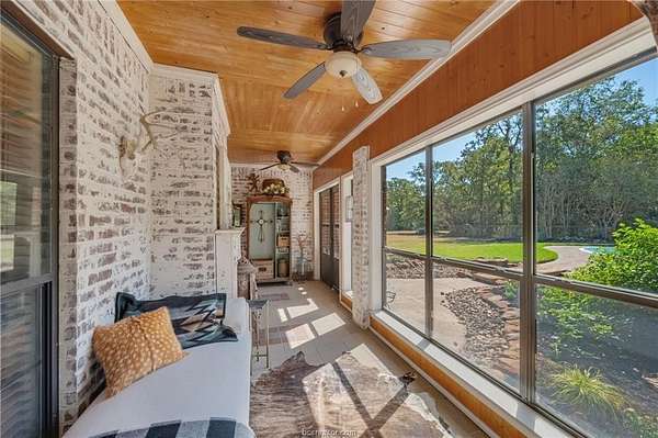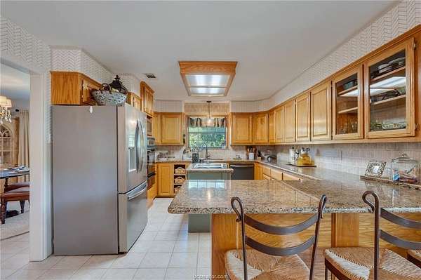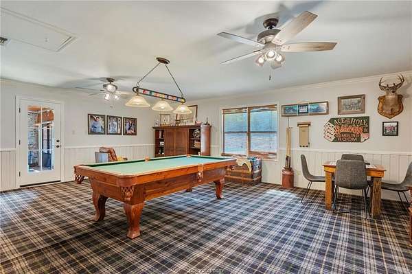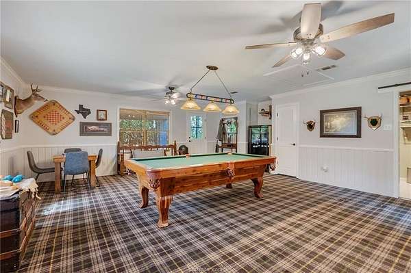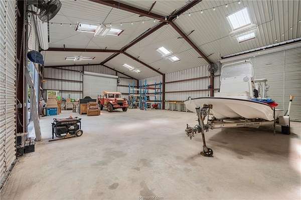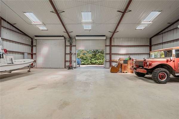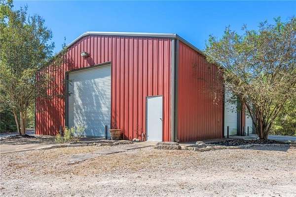 Situated on a 5 acre tract and zoned for College Station schools, this property has so much to offer for those looking for a convenient location with plenty of space to explore the outdoors! The four bedroom home offers a spacious living area with cedar accents, wood flooring and a masonry fireplace to enjoy cozy evenings at home. Large kitchen boasts solid wood cabinetry and granite counters with tile backsplash. The dining room, breakfast nook and eating bar will give the owner lots of space to spread out when entertaining guests. Primary suite is tucked away from other bedrooms in this split floor plan. Primary bath includes walk in shower, soaking tub and large walk in closet with a dedicated vanity space. Bonus room has enough space for a tv lounge or sitting area, game table, pool table, etc . . . the possibilities in this room are endless. Just steps away through the breezeway/carport and up the stairway is a large deck overlooking the swimming pool as well as a beautiful efficiency apartment with views of the massive and gorgeous oak trees. This space would be ideal to use as an office, student rental or just a quite place to escape! The 40'x 60' shop with 16' eave height has 4 roll up doors and driveway access on two sides for convenient arrival and departure. Also included on the property is a 36' x 20' shed. There is plenty of additional space outdoors to add your own features and structures if desired. Make an appointment today to see this one of a kind property!