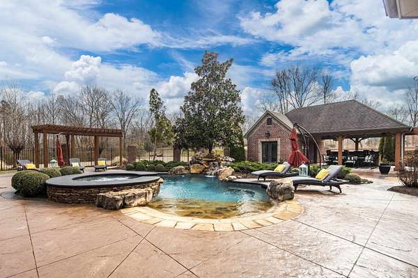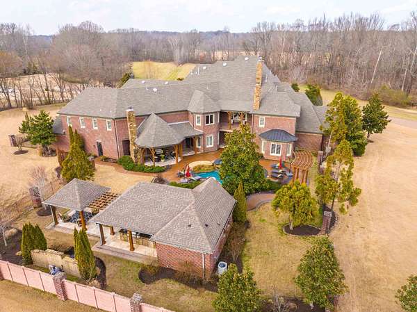 Welcome to an extraordinary custom estate in the heart of Collierville, perfectly situated on 2 private acres. This one-owner masterpiece has been recently renovated & is truly move-in ready for its next distinguished owner. Featuring 8 spacious bedrooms, 8 full baths, 2 half baths, this home was designed for elevated living & unforgettable entertaining. Dual primary suites (one up & one down) offer flexibility and privacy, while two dedicated offices provide the perfect work-from-home setup. Entertainment takes center stage with a private movie theater, full home gym, & expansive living areas that seamlessly blend luxury & comfort. Step outside to your own resort-style retreat complete with a heated spa pool with custom lighting, hot tub, outdoor kitchen with Egg grill, full bar, cabanas, and multiple fireplaces inside & out creating the ultimate year-round indoor-outdoor experience. A separate pool house adds additional versatility for guests, extended stays, or private studio