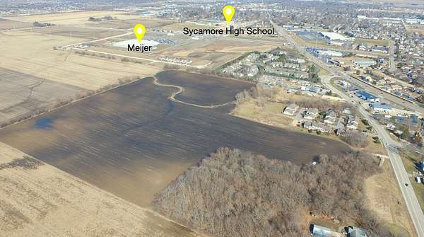 Prime 48 acre development site contiguous to Sycamore city limits. All utilities accessible. Site is currently zoned AG and is designated as residential in the Sycamore future land use map. Multifamily and commercial developments immediately adjacent. Located just off of major commercial artery Dekalb Ave and Peace Rd. Numerous national retailers in immediate vicinity including a brand new Meijer, Portillos, Menards, Farm and Fleet, Culvers, McDonalds etc. Priced at $34,898/acre.