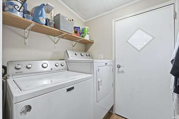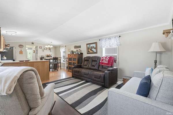 Situated on a prime country corner lot just north of Columbia City, this 2.36-acre property offers space, updates, and functionality. The single-wide mobile home features 2 bedrooms and 2 full bathrooms, including a private ensuite. One bathroom has been completely remodeled within the last year and includes a Bath Fitter stand-up shower. The kitchen offers 3/4 " hardwood cabinets, with all kitchen appliances included and are approximately one year old. Washer and dryer are also included. Nearly the entire home has been drywalled and includes residential windows with 6" exterior walls. Newer laminate flooring is featured in the living room and second bedroom. Major mechanical updates include a furnace and A/C installed roughly 6 months ago, and the roof is estimated to be approximately 6-7 years old. Enjoy outdoor living with front and back decks less than one year old. The property also includes a heated, oversized 32x24 detached garage with 200-amp service, while the home has 100-amp service--perfect for hobbies, storage, or a workshop. A great opportunity for country living with modern updates and ample space.