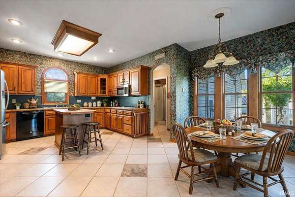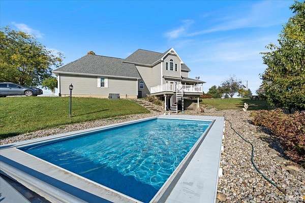 Situated on 6 acres, this 5 bedroom, 4 bathroom property offers the ideal combination of comfortable living, outdoor recreation, and fully equipped equestrian facilities. The home features numerous updates, including windows and doors throughout, along with spacious living areas designed for both everyday life and entertaining. The main level includes a gas fireplace, laundry room, full bathroom, flexible bedroom or office space, and an insulated sunroom. The kitchen is well-appointed with solid wood cabinetry, stainless steel appliances, and thoughtful storage features. The primary suite offers a private retreat with an updated bathroom featuring a tile walk-in shower, jetted tub, and granite countertops. Upstairs includes additional bedrooms, a Jack-and-Jill bathroom, and built-in storage details. The finished walk-out basement expands the living space with a second gas fireplace, wet bar, full bathroom, and versatile bonus rooms.Major updates include a newer roof, whole-home generator (powering the house, barns, and pool), updated septic components, and a well pressure tank. Outdoors, enjoy a heated saltwater pool, lighted gazebo, wrap-around front porch, circular driveway, and mature fruit trees. For horse and livestock enthusiasts, the property includes multiple barns. Highlighted by a 64' x 28' barn with 8 stalls, along with additional outbuildings with stall and chicken coop, fenced pastures, electric fencing, and an additional chicken coop. With space to spread out and infrastructure already in place, this 6-acre property offers a rare opportunity to enjoy country living without sacrificing comfort or convenience.