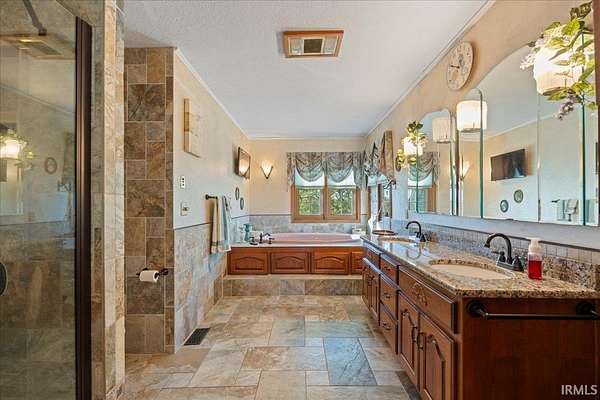 - 1 st Bedroom En Suite, Attic Pull Down Stairs, Attic Storage, Balcony, Built-In Bookcase, Built-In Speaker System, Ceiling Fan(s), Ceiling-9+, Ceilings-Vaulted, Closet(s) Walk-In, Countertops-Solid Surf, Custom Cabinetry, Deck Open, Detector-Smoke, Dishwasher, Disposal, Formal Dining Room, Foyer Entry, Garage Door Opener, Generator-Whole House, Great Room, Jack & Jill Bath, Jet Tub, Kitchen Island, Landscaped, Main Floor Laundry, Natural Woodwork, Pool Equipment, Porch Covered, Range/Oven Hook Up Gas, Refrigerator, Stand Up Shower, Storm Doors, Sump Pump, Tub/Shower Combination, Twin Sink Vanity, Utility Sink, Washer Hook-Up, Water Heater Gas, Water Softener-Owned, Wet Bar, Window Treatments