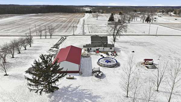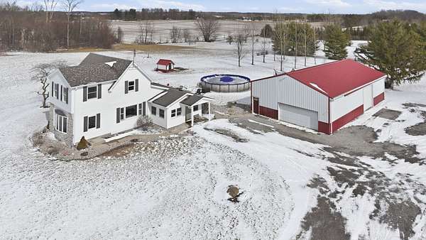 Start Showing Date: 2/27/2026 Welcome to this charming country home situated on a peaceful 2.5 acres, offering over 2,000 sq ft of updated living space. This two-story farmhouse features 4 bedrooms, 2 full baths, and a versatile bonus room that can serve as a breakfast nook, home office, or additional living space. The kitchen includes an eat-in dining with built-in storage bench seating under the windows, and the main level offers a comfortable living area plus a flex room for added functionality. The primary bedroom is conveniently located on the main level with its own ensuite bath. New flooring and thoughtful updates run throughout the home, showcasing how well-kept and maintained this property is inside and out. Outside, you’ll find tasteful landscaping, some fruit trees, an above-ground pool for all the summer fun, and a shed/coup. The impressive 60X32 pole barn features two overhead doors (one 10ft high), updated electrical, with plenty of storage and workspace. Kitchen appliances remain with the home.