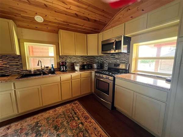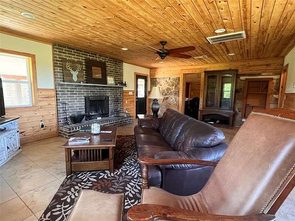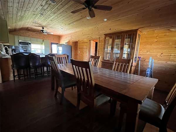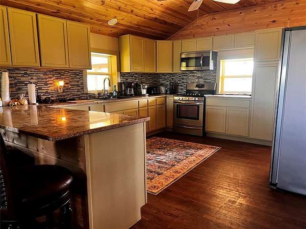 Nestled among rolling terrain and towering trees, the charming rustic 2-bedroom, 1-bathroom home welcomes you with a spacious living room, a thoughtfully designed kitchen featuring granite countertops, and a large dining area perfect for gatherings. The property also boasts a true entertainer's retreat--a man cave with a large deck built for hosting friends, complete with ample space and a cozy wood stove to warm up those crisp winter nights.