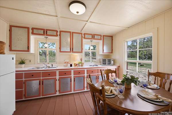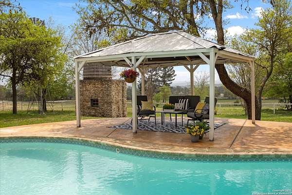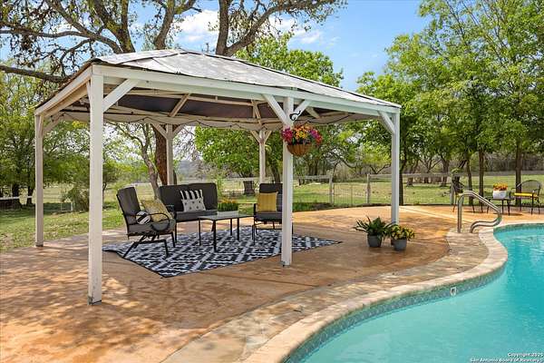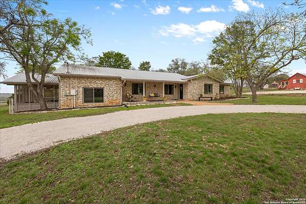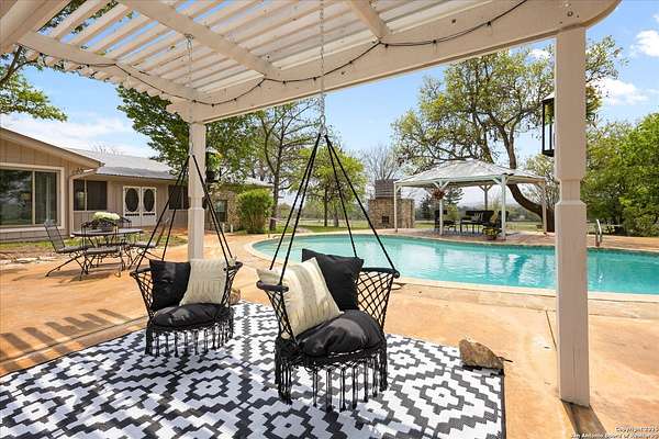 Motivated Sellers welcome offers on this fantastic 39+ acre ag-exempt, unrestricted Texas Hill Country ranch. With panoramic views that stretch for miles, this property offers the rare opportunity with a second build site, if you're looking to build additional structures. Move right in, enjoying the updated ranch home and the land to put cattle, horses or your 4H projects. The recently updated ranch house that's full of charm has 3 bedrooms, a dedicated office, and open-concept living spaces, it's ideal for everyday living and weekend entertaining. The kitchen is a showstopper-featuring black honed granite counters, double ovens, a coffee and wine bar, pantry, and serene views overlooking the in-ground pool. The primary suite bathroom offers a Swedish soaking tub, oversized walk-in shower, and a private enclosed patio perfect for morning coffee or sunset views across the ranch. Multiple patio areas invite you to host gatherings, relax under pergolas, or simply unwind in the in-ground pool. An added plus is a separate guest cabin offering guests a charming stay with a full kitchen and bath. Use it for an Airbnb and offset costs. The entire property is fully fenced, gated, and cross-fenced, ideal for livestock or equestrian use. Whether you're looking for a peaceful weekend retreat or a family legacy property this unique ranch has it all. Just minutes from Comfort's dining, shops, and wineries. Come tour the property, soak in the panoramic views and fall in love with a lifestyle and beauty of the Texas Hill Country.