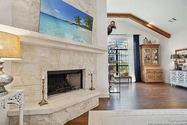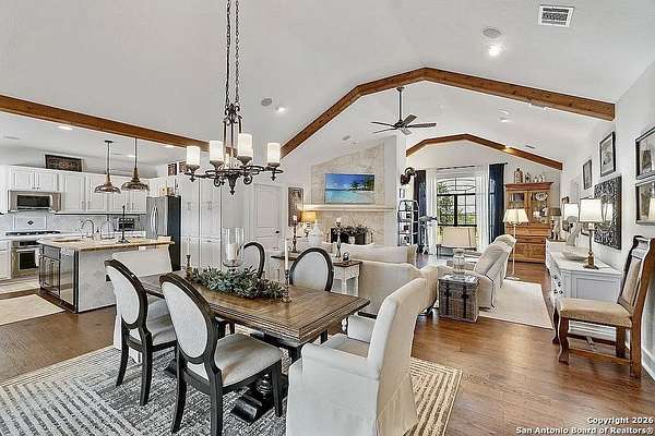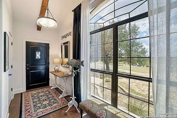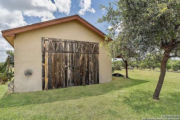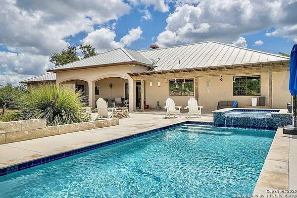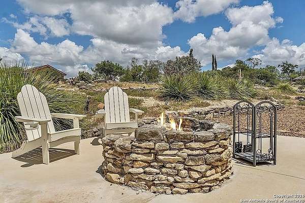 Pre-approved buyers only. Showings by appointment. Just West of Boerne, 30 minutes out of San Antonio, located in the Texas Hill Country's Woodridge Estates, the Kendall Jackson Home is seated on 4.25 beautiful acres. The Kendall Jackson Home is ideal for those seeking space while staying close to amenities; offering the serenity of country living, yet accessible to four walkable towns, providing every amenity you might need. From the inviting front porch, you enter through the front door and entry, and into the family room, with a vaulted ceiling and wooden beams making this room a generous, open living area perfect for gatherings or snuggling around the propane, limestone fireplace and hearth. An 8x7, double-glassed, tinted, arched window frames a wooded, Texas Hill Country view, with numerous mature oak trees and beautiful landscaping in a backdrop of hills. The open-concept design flows from the living room into the dining room, which looks out onto yet another scenic view, bordered by your private in-ground, low-maintenance, heated pool and hot tub. Sitting on the covered front porch while watching the sunrise, you might delight in feeding the friendly deer that wander about, particularly those that will eat right from your hand. At the end of the day, step out back and watch a beautiful sunset while sitting around your hand-hewn stone fire pit. The kitchen is equipped with a 3-year-old Bosch dishwasher and Dukar propane gas stovetop; a Butcher block top island with storage and custom cabinets and drawers abound in this well-thought-out kitchen. Perfect location. Under 10 minutes to Comfort, 20 minutes to Boerne, 23 minutes to Kerrville, a lovely 30-minute drive to Fredericksburg, and a 30-minute drive to San Antonio. All four towns are beautiful, historic, "walkable" Texas towns, each with fine dining, countless antique stores, museums, sightseeing, the famous SA Riverwalk, and much more. Extras: Metal roof added 2021/Texas limestone and stucco exterior/manufactured hardwood floors/Saltillo Tile in bathrooms (2022) Master bedroom has walk-in closet. Home remodeled in 2022. Special outdoor lighting Separate Laundry room Cable/High-Speed Internet Water Softener Drinking water filtration system 2 new 50-gallon electric water heaters. All rooms, (except family room with a cathedral ceiling) have 10' ceilings with beams; double-paned storm windows allowing lots of natural light and beautiful views from every room. New bathroom toilets, shower, floors, and tub (2022) Ranch fence at the back of the property An attached two-car garage ensures easy access. Air-conditioned storage room adjacent to the garage. High efficiency, Trane A/C, One year old Large back patio with ceiling fans High-speed internet! Wildlife abounds. White tail deer, Axis deer, turkeys, and more.