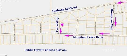 HWY 140 West to left on Greylock, then left again on Mountain Lakes Drive, then left again into Como Way. The parcel will be on the right side. My sign is on the parcel.