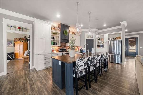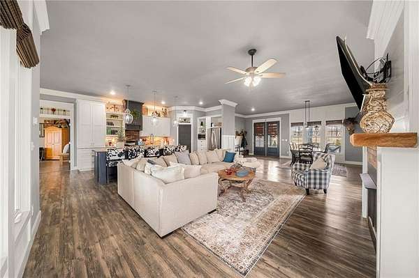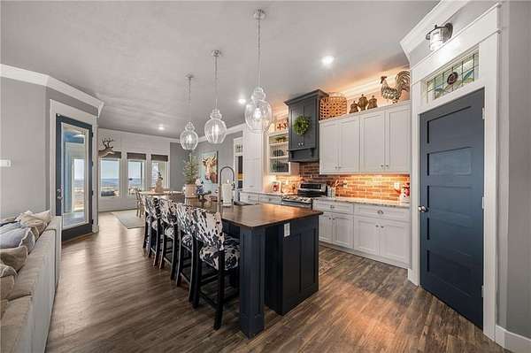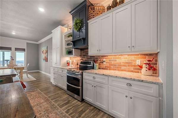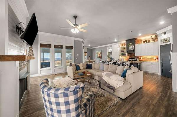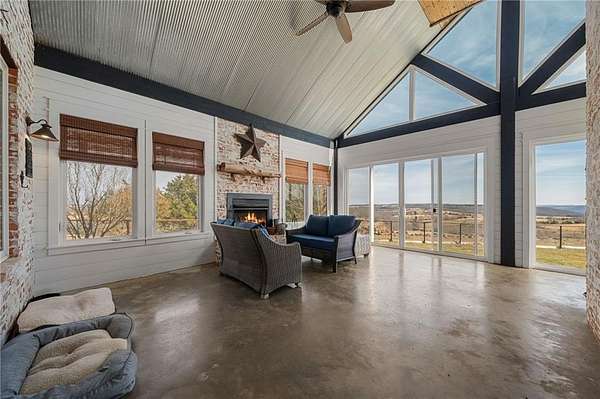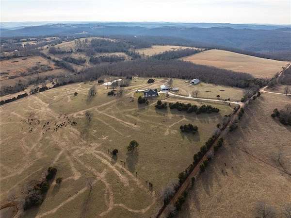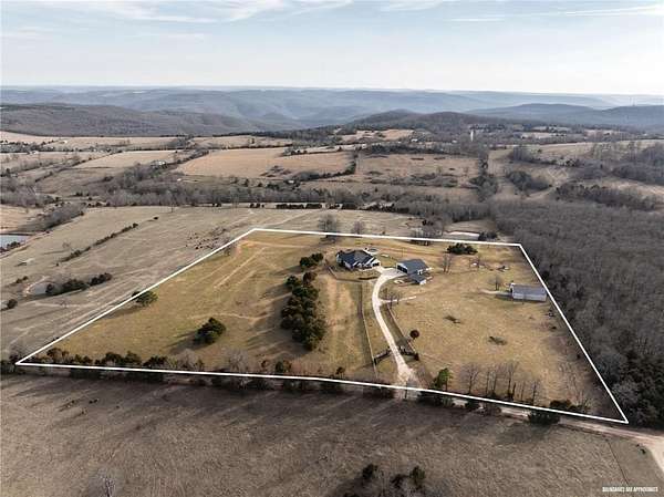 Perched atop a hill in a private, remote setting, this stunning modern farmhouse offers expansive views with unforgettable sunrises and sunsets. Built in 2018, the 3,450 sq ft home features 4 bedrooms and 2.5 baths and includes 20 acres. The kitchen is designed for both beauty and function with granite and butcher block countertops, soft-close cabinetry with custom slide-outs, pantry, farmhouse sink, pot filler, and double oven. The spacious primary suite showcases shiplap accent walls, a large custom tile shower, soaking tub, and a walk-through closet that connects directly to the laundry room. The laundry room includes a sink and abundant storage. Oversized sunroom featuring a gas log fireplace & mini-split system. Outdoor enthusiasts will appreciate the proximity to the Buffalo River and popular hiking destinations including Hemmed-In Hollow, Hawksbill Crag, Lost Valley, & Centerpoint Trailhead. Wired for a generator and has a whole home surge protector. 40x 50 shop building, chicken coop and room for animals.