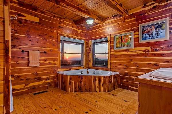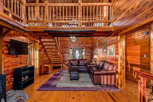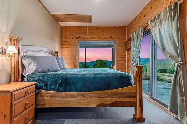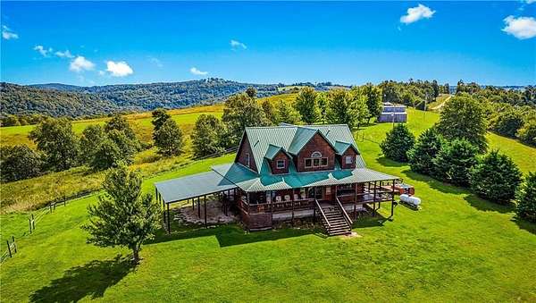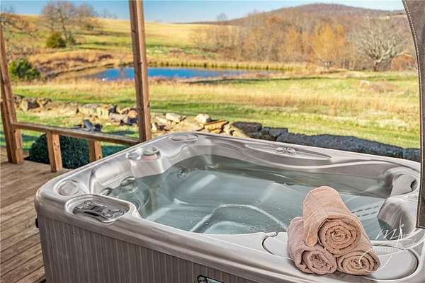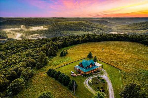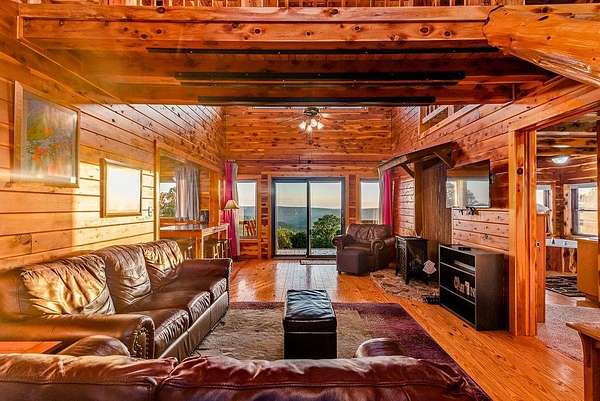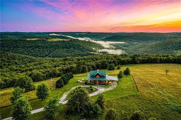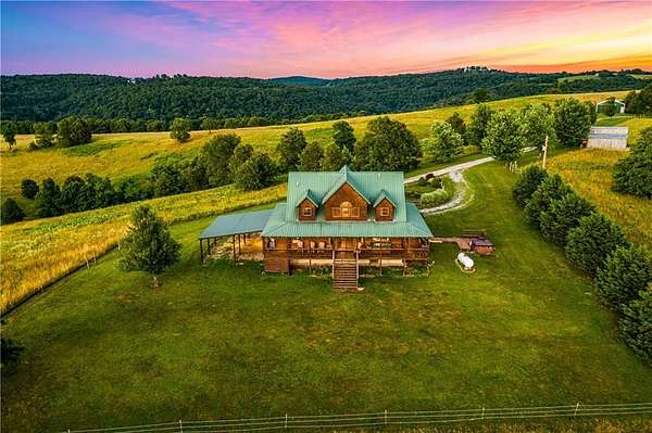 Here's your chance to own this rare Newton County property with 550+/- acres having a nice mix of pasture, hardwoods, a spring and spectacular mountain sunset views from your custom-built Log Cabin, AND one of the renowned "Mountain Springs" natural springs supplies fresh water to the home. This unique property offers 3 bedrooms, an office, 2 baths, an open floor plan highlighted by vaulted ceilings and a stunning catwalk that separates the upstairs bedrooms. Enjoy year-round outdoor living on the wraparound covered porch, where you can take in spectacular long-distance mountain sunset views or relax in the hot tub under the stars. Equestrian enthusiasts will appreciate the horse barn and pasture with fabulous trails to ride nearby. Bring your convertible and ride the scenic mountain highways because the drive is asphalt, leading from a state highway. There's a 24 X 30 carport attached to the home. Selling furnished and with appliances and hot tub conveying!