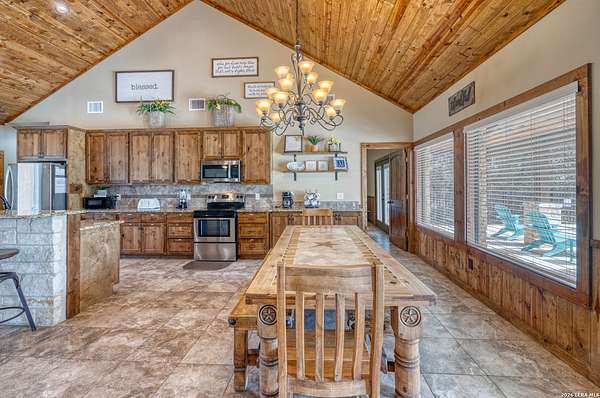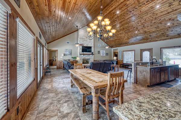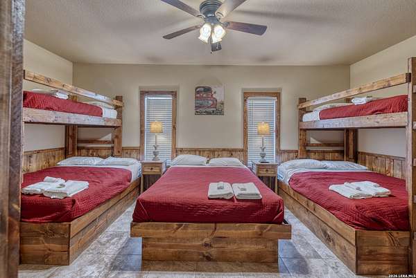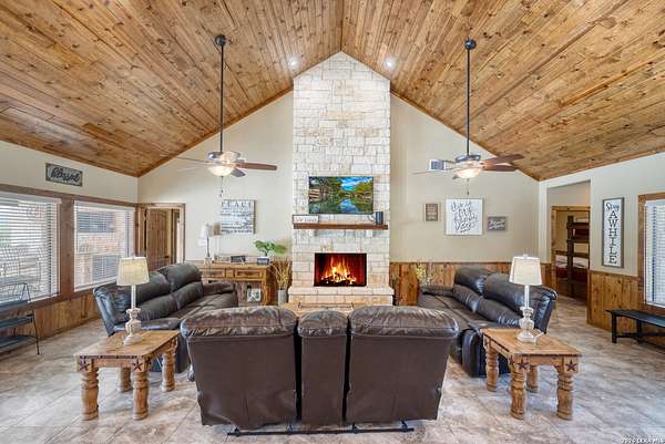 Hill Country retreat with resort-style outdoor amenities in the sought-after Mountain Valley subdivision of Concan, TX. Situated on 1.55 acres, this 2,892 sq ft home offers 5 bedrooms and 5.5 baths and is currently operating in a rental pool, making it ideal as a private getaway, vacation home, or investment property. The open-concept living, dining, and kitchen areas are designed to comfortably accommodate large groups. Each of the five spacious bedrooms includes a private en-suite bath, providing comfort and privacy for owners and guests, plus an additional half bath for convenience. The outdoor space is built for entertaining, featuring a private pool, covered bar area, fire pit, volleyball court, and horseshoe pits. The expansive 1.55-acre lot offers room to relax, gather, and enjoy the Hill Country setting. Located just minutes from the Frio River and Garner State Park, this property provides easy access to tubing, kayaking, hiking, and year-round recreation. A rare opportunity to own a spacious home with strong rental appeal in one of Concan's most desirable vacation communities.