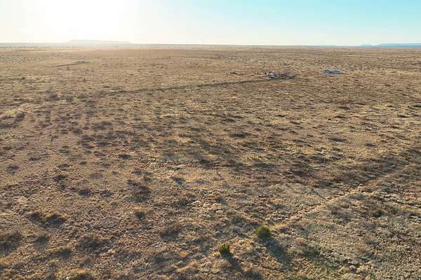 The property is situated in a broad, open landscape characteristic of eastern San Miguel County where grasslands, wide skies, and gently rolling terrain create a peaceful setting.