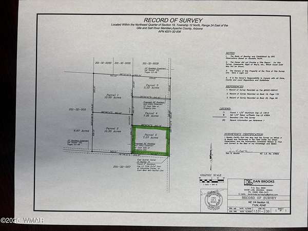 34.426725 degrees /-109.833110 degrees From hwy 61 turn N on Stanford Rd. Drive past ( Dead Mans Curve ) and continue back to Stanford and head N. Turn L/E on CR 8285. Drive appx 1 mile, turn R/N on N8715. Drive appx 100 ft and find a place to park. Walk or drive off road appx 1000 ft to the East. Property has been recently surveyed. Possible to access from N8716 as wll.