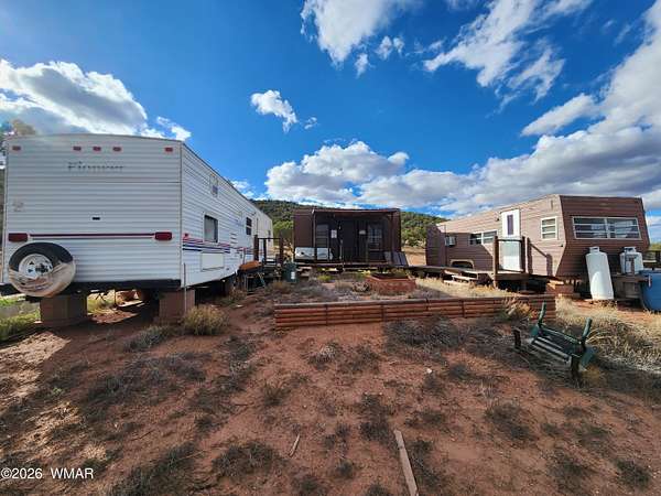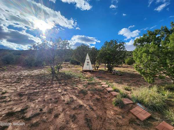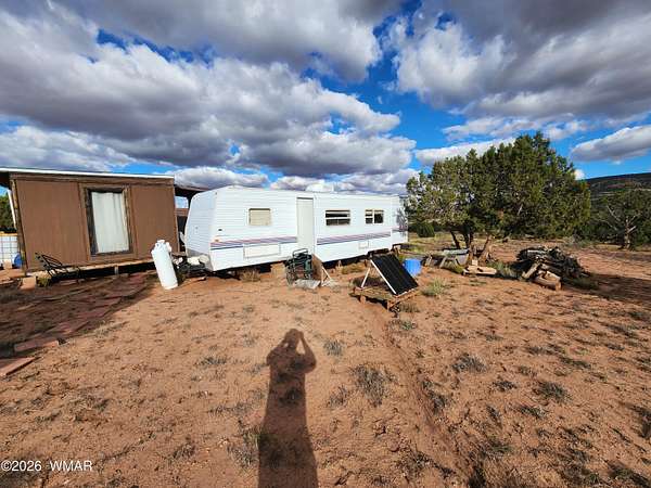Extraordinarily beautiful valley with sweeping, long-range views, this off-grid property offers privacy, seclusion, & room to breathe. The land spans from the valley floor nearly to the top of the ridge, creating varied terrain, excellent viewpoints, & a true sense of space - the most beautiful parcel we've ever seen, and we've seen a LOT of 'em! The 470' deep well draws from the Coconino Aquifer, providing a reliable water source for sustainable living. Improvements include quality fencing, a large barn, and other outbuildings, as well as RVs with a deck between them that has a dedicated social space for relaxation. Surrounded by wide-open country, this property offers the kind of terrain that artists, hunters, outdoorsmen, naturalists, & all who seek peace have been yearning for!