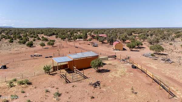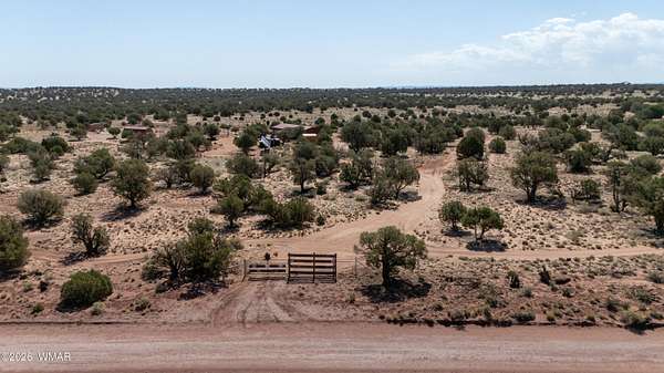 From Snowflake, head east on the Concho Highway. Turn left (north) on Hunt Rd. 5270 with blue and yellow sign. In approx 2 miles, turn left (west) on N9211/Lomas. House is in the right after 2.34 miles and gate has Key Log Ranch on it.