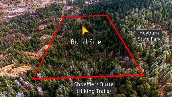 Discover the beauty and seclusion of this pristine 20 acre lot, the south side of the property borders of Heyburn State Park Land and the west side of the property boarders Idaho State Parks and Recreation. This land boasts a timber exemption, a passed Perc test, and an established building pad. Located only 35 minutes from Coeur d'Alene and 45 minutes from Spokane Valley, it offers multiple build sites for your dream home and is just 5 minutes from two boat launches. A county-paved road provides easy access to the property. Enjoy huckleberry picking and observe the stunning wildlife, including moose, elk, bear, and bobcat. The property features a shared private driveway (easement) along the property lines, ensuring privacy as the driveway does not cut through anyone's property.