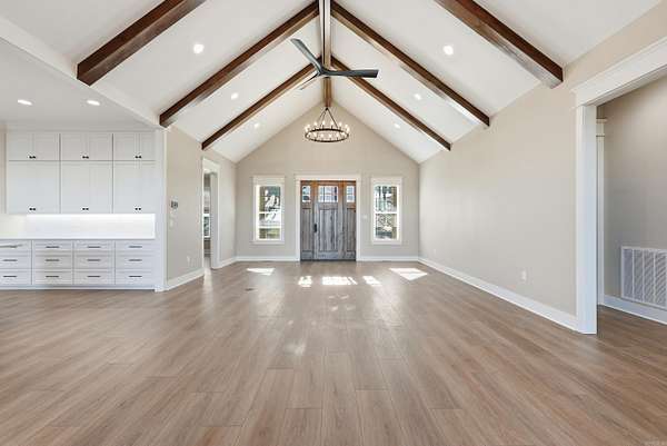Welcome to this beautifully designed custom-built home, offering the perfect blend of comfort, luxury, and natural beauty. Situated with breathtaking views of Beaver Fork Lake. This 4-bedroom, 3-bathroom home features an open-concept layout, a spacious kitchen, and a cozy living area, all designed with high-end finishes. The expansive master suite provides a serene sanctuary with lake views, while the additional bedrooms are perfect for family or guests. Enjoy extra living space with a versatile bonus area in the finished basement, offering endless possibilities as a home theater, gym, or recreation room. Step outside to your private oasis where you can relax on the patio or deck, soaking in the tranquil surroundings and stunning lake views. This property is perfect for those who appreciate nature, luxury, and the convenience. Don't miss the chance to make this incredible home your own!