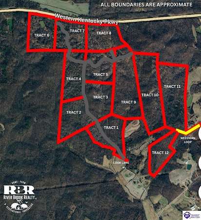 Starting in Elizabethtown, Kentucky, head west on the Western Kentucky Parkway and continue for about thirty miles until you reach Exit 107 for KY-259. Take the exit and turn left to follow KY-259 south toward Leitchfield. Continue on KY-259 until you reach the junction with U.S. 231. Turn right onto U.S. 231 and follow it through Cromwell. Cook Lane will be on your left off U.S. 231 in the Cromwell area, with the gravel road leading to various properties along the lane. Signs posted.