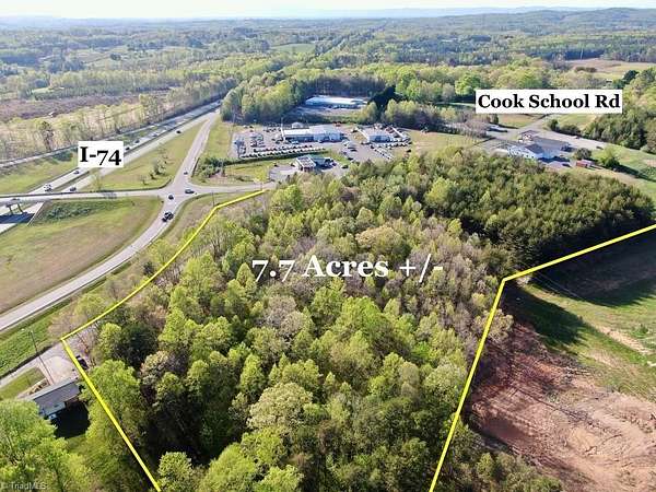 7.7 Acres +/- at intersection of U.S.52 & Cook School Road. Currently zoned RR but Highest & Best Use is Commercial. (HB) or (GB) is possible along U.S. 52 due to its visibility and traffic. The intersection's visibility along U.S. 52 could make it suitable for small businesses, such as convenience stores, gas stations, or local retail, especially if traffic increases with I-74 upgrades. NCDOT's focus on upgrading U.S. 52 to interstate standards could improve access and increase development interest. The region's tourism, driven by attractions like Pilot Mountain and the Andy Griffith legacy, could spur interest in hospitality or retail near this intersection. It's 4.3 miles from downtown Pilot Mountain and a 29-minute drive to downtown Winston-Salem. Water & Sewer are not available at this time.