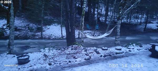 New upgrades fall 2025! Entire roof and chimney exterior have been replaced ($60,000 with Brown Roofing) without an increase in price! This is a huge value to the buyer. See photos #2-4 on 12/18-19/25 that the creek is within the banks with room under the owners bridge. A true retreat with the music of Little Rock Creek and the whisper of the trees. Natural light fills the rooms. Windows and doors can be opened to hear the year-round creek. This NW contemporary home was custom built with attention to quality materials and craftsmanship. Oak wood floors are in the main room and sun room. Tile floors are in the kitchen, powder room and laundry. Four fireplaces add ambiance. The kitchen, dining and sun room face the creek with doors to a large deck. Looking up the forested slope is a lush area of Fir, Cedar and Maple trees. The creek has not flooded the banks and flood insurance has not be required. The primary suite with a fireplace and an updated bathroom is on the main floor. Adjacent to the primary suite is a generous office with built-in cabinets. Upstairs are two bedrooms and bath with a tub/shower. One of the bedrooms has a fireplace and Murphy bed. The oversized three car garage has storage space and an entrance to the laundry/mudroom. A fenced area for pets with tree shade is off the garage.