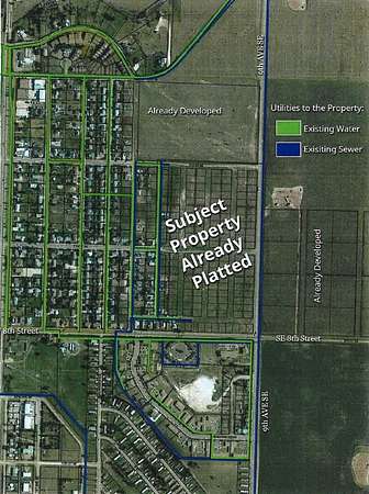 The parcel is on the corner of 8th St SE and 6th Ave SE.