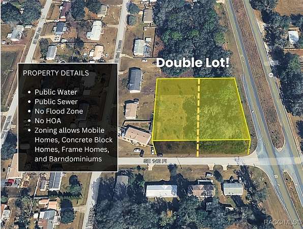 Prime location in the heart of Summerfield, FL! Rare opportunity to own a 1.09-acre Corner lot consisting of 2 subdividable Parcels with City water, Sewer, and Electricity Available. Zoned R4, allowing site-built, Modular, or Mobile homes, this property offers exceptional flexibility for your dream home or Investment project. Enjoy the benefits of No HOA, paved road access, and a Non-flood Zone location. Conveniently located just 10 minutes to The Villages, 20 minutes to Ocala, 1 hour to Orlando, and 1.5 hours to Tampa. This property offers Excellent investment or development potential, with the adjacent lot also available for sale. Qualified buyers can own this property with as little as 20% down payment.
