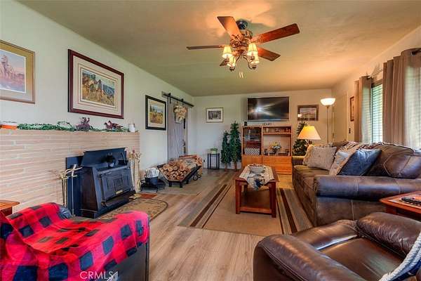 Welcome to your own slice of country living! Nestled on 10 picturesque acres in a lovely community, this well-maintained 2 bedroom, 2 bath home offers privacy and space only rural living can provide. Take one step inside this meticulously maintained home and you'll fall in love with all of its character and charm. From the numerous built-ins' throughout the home, to the large sewing/crafting closet in the living room that allows you to tuck away your projects at the of the day, and the ahead-of-it's-time cabinet pull-outs in the kitchen, you'll be amazed at the amount of storage and functionality this home offers. Both spacious bedrooms feature beautiful views of the surrounding landscape with a generous sized bathroom in the hallway between them. The second bathroom offers a walk-in shower and is conveniently located off of the laundry room/mudroom. This home has been tastefully updated with dual-paned windows, and luxury vinyl plank flooring throughout. In addition, you'll find a detached garage and 3 barns on the property, the largest of which is equipped with electricity; providing ample space for storage, hobbies, equipment or livestock. Whether you're seeking a peaceful country retreat, or a property with functional outbuildings and the potential for agriculture growth, this home delivers charm, usability, and countless possibilities.