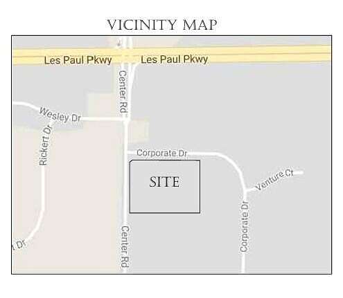 From Les Paul Pkwy/18/59, south on Center St, East on Corporate Dr. Lot is first corner lot