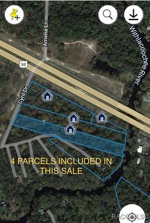 Est $3,204/mo7 Acres on the Withlacoochee River with approximately 237 ft. of River frontage and highway frontage of approximately 938ft. with 4 parcels included. These parcels may also be eligible for commercial zoning in this growing area. Located approximately 2 miles from I 75 on US98 and SR50. Centrally located between Orlando, Tampa & Ocala. GREAT LOCATION! Call for more information.