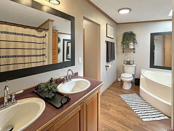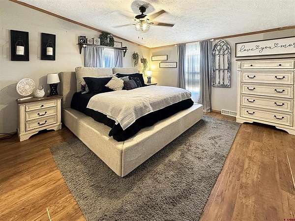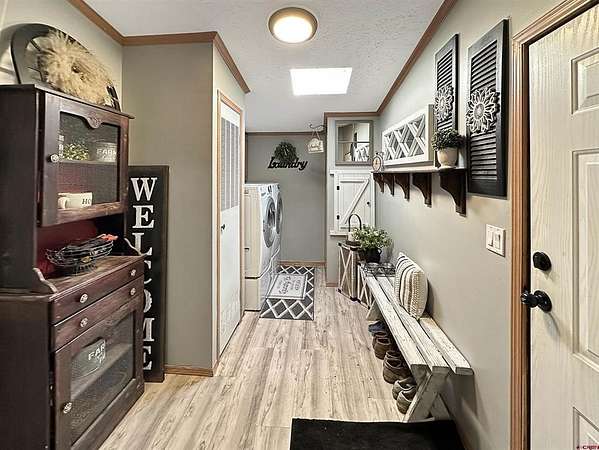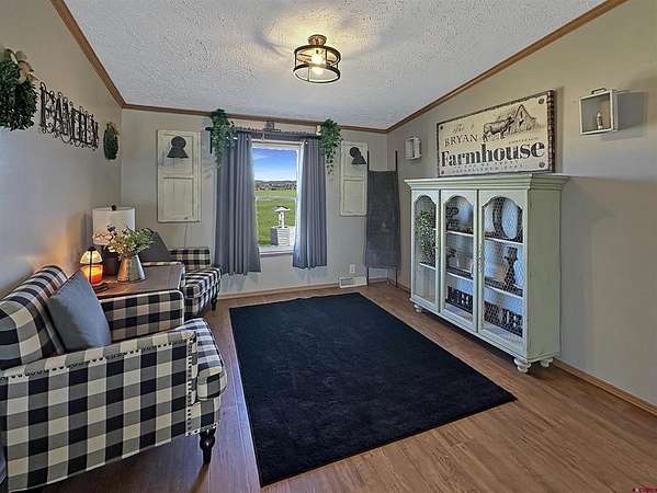 Elecia Bellmire, Stacked Real Estate Professionals, C: 970-739-7785, elecia@stackedrealestate.com, www.crenmls.com: UNIQUE Cortez property on 35 acres on the north end of town—inside the city limits with city amenities, yet county-zoned Commercial/Ag. This spacious 2,432 sq ft home offers 4 bedrooms and 3 full bathrooms with a den, dining area, family room, and a huge kitchen sits on one 11.51 acre parcel. Skylights throughout bring in beautiful natural light. The layout includes one bedroom with a walk-in closet and ensuite bath, Bedrooms 2& 3 connected by a Jack-and-Jill bathroom, and a primary suite with two walk-in closets and an ensuite featuring a soaker tub. Extensive upgrades include a new on-demand hot water heater, new furnace, new A/C condenser, new toilets, new drywall to center beams, and new outlets and fixtures throughout. Enjoy the new covered concrete patio with fan and lights, plus new concrete sidewalks connecting the shop and multiple entrances. Enjoy the beautiful La Plata Mountains and Ute Mountain views. A standout feature is the new 30x40 shop with loft, complete with water, power, pellet stove, swamp cooler, and a 30-amp air compressor. RV 30-amp hookup included. The property also features a new circle driveway and coded gate for security and privacy. Fully piped irrigation supports the yard to the pond system and sprinklers, with newly planted dryland grass. The property comes with 2 MVI Water Taps. Irrigation shares are available for purchase or lease through MVI (not included). The improved pond includes a dock, sand beach, rope swing, and 120/240V 100-amp electrical service to the dock. The 23.49 acres can be kept as a separate parcel for development or keep as your private haven in town!