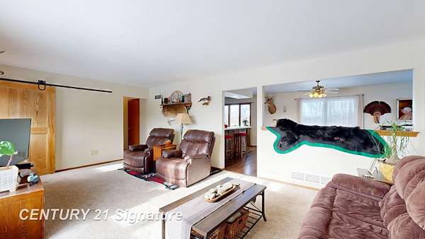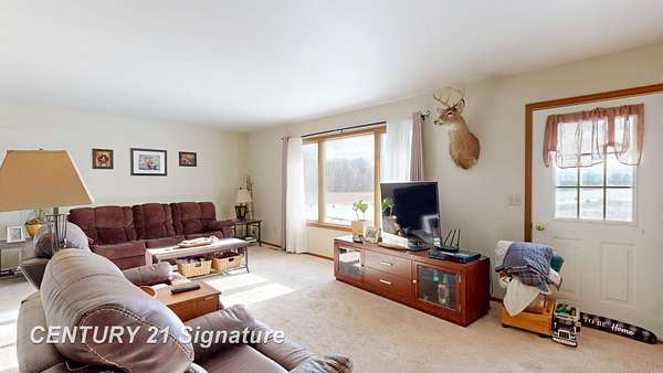 Enjoy country living at it's best, nestled back on this private 19 acre parcel. A Partially wooded lot on a paved road in Caledonia Township! This well maintained ranch home offers 3 bedrooms, 2.5 bathrooms with 1,512 SF of comfortable living space. A large living room creates the perfect setting for relaxing or entertaining, while the kitchen features include appliances, a large peninsula for extra seating, and a spacious dining area. Enjoy entertaining or morning coffee on the deck while watching the wildlife! The full basement is ready to be finished to suit your personal needs and the first floor laundry adds everyday ease. Complete with an attached 2.5 car garage as well as a 32x24 pole barn with an attached lean-to, gives plenty of room for storage, hobbies and recreation. In the last three years both full baths were completely remodeled and the entire interior was professionally painted. Call me for your personal showing before it is sold! 989-721-0954 OPEN HOUSE SATURDAY 1-17-26 12-1:30 PM.
