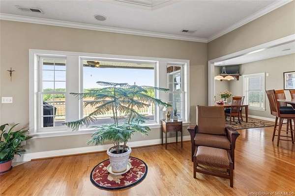 Welcome to your dream retreat nestled on 10 acres of picturesque land in Corydon. This custom built home offers unparalleled craftsmanship & attention to detail at every turn. As you step inside you'll be greeted by stunning hardwood floors that flow throughout the house creating an inviting & warm atmosphere. The eat-in kitchen features a spacious layout with an abundance of custom cabinetry throughout. The living spaces are thoughtfully designed, offering both comfort & style. Each room boasts unique touches. One of the true highlights of this property is the panoramic views that can be enjoyed from nearly every window. Imagine waking up to breathtaking sunrises & winding down with spectacular sunsets over your expansive estate. Outside, the property offers endless possibilities. Explore the vast acreage, perfect for hiking, horseback riding or simply enjoying nature's beauty. With plenty of space for outdoor activities, gardening, or even building additional amenities like a pool or barn. This is not just a home; it's a lifestyle. Whether you're seeking tranquility in nature or a place to entertain family & friends, this meticulously designed property promises a once in a lifetime opportunity to own a truly exceptional piece of Corydon. Schedule your private tour today & prepare to be captivated by all that this extraordinary home has to offer.