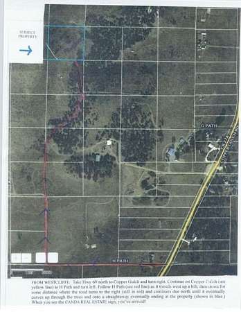 See "Documents" for map to get there. From Westcliffe: Take Hwy 96 north to Copper Gulch. Go left on Copper Gulch and continue to "H Path" Turn left onto H Path and continue straight at the arrow and continue to the end where you see a Colo Mtn Land & Home sign - you've arrived!