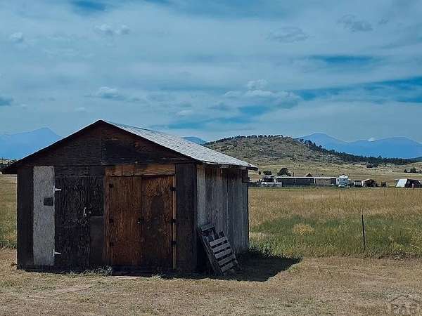 This custom-built 3-bedroom, 2-bathroom residence is nestled on approximately 5 acres of serene Colorado landscape, offering mountain views. The home boasts a durable metal roof, and the included roof-mounted solar system ensures energy efficiency year-round. Inside, you'll find a cozy pellet stove, perfect for chilly evenings, and all appliances are included for your convenience. Window coverings and ceiling fans complement this floor plan, providing privacy and style. With a spacious 2-car garage and an unfinished basement, there's plenty of room to expand and make this home truly your own. The property is fully fenced, ideal for pets or livestock, and features a large shed for additional storage. This property is a rare find, offering the perfect blend of comfort, functionality, and views. Don't miss the opportunity to make this your forever home!
