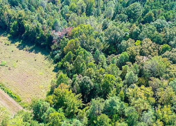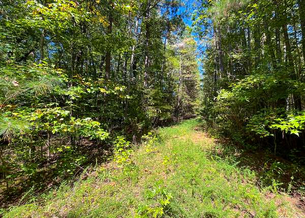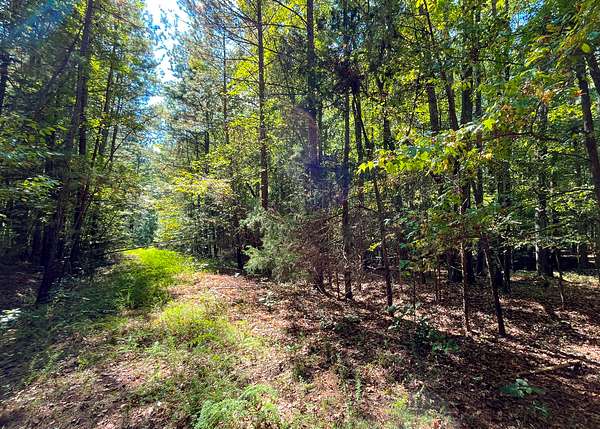 The lot is covered with a mix of oak, hickory, and loblolly pine trees, giving it a shaded, natural atmosphere.