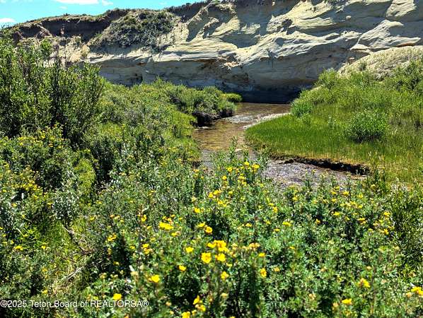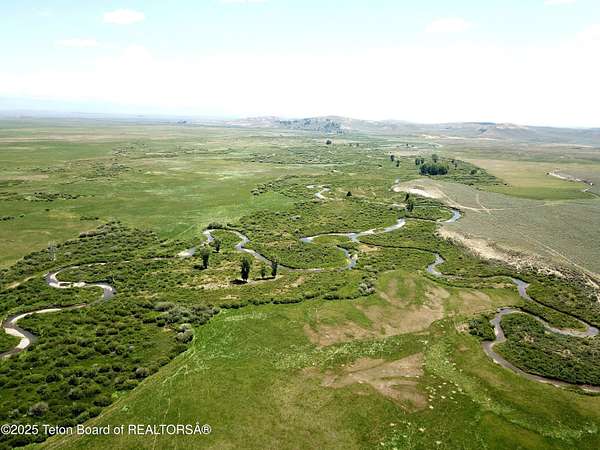 This exceptional ranch offers over 420 acres of productive, irrigated hay meadows, with over 98% of the land consisting of fertile creek bottom and irrigated ground. Two elevated bluffs provide breathtaking views and would make prime locations for future homesites. Power runs through the property, adding convenience to its development potential. The setting is nothing short of spectacular, with panoramic vistas of the Wyoming, Wind River, and Gros Ventre mountain ranges surrounding you. Water is a dominant feature here-the North and South Horse Creeks merge on the property, complemented by a natural spring that winds its way through the northern acreage. Anglers will appreciate the healthy populations of Cutthroat, Brown, and Brook trout in the on-site streams. Wildlife is abundant, with regular sightings of moose, mule deer, antelope, coyotes, and waterfowlplus the occasional elk passing through. Currently, the ranch supports grazing for approximately 100 cow/calf pairs from June through October, offering a turn-key livestock operation in a truly remarkable setting.
