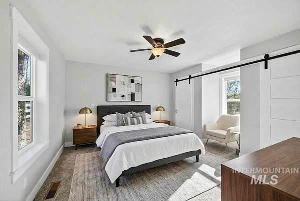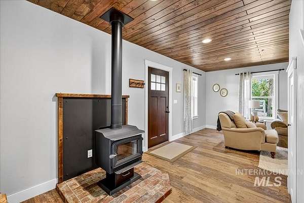 Discover this one-of-a-kind, completely renovated modern Craftsman home nestled on 5.72 peaceful acres in the highly desirable Fruitvale-Glendale area. With valuable water shares included and the Weiser River Trail just steps away, this property offers the perfect blend of rural serenity and outdoor recreation. Step inside to be greeted by stunning custom-stained dark pine ceilings and breathtaking views from nearly every window. The open-concept living area flows seamlessly into a beautifully designed kitchen featuring custom tile countertops, ample cabinetry, and a separate pantry/laundry room with a utility sink and direct access to the tiered back deck. The main-floor primary suite enjoys more incredible views and custom barn-style closet doors. A spacious four-piece bathroom showcases custom cabinetry and tile work. Upstairs, a generous guest bedroom offers a large walk-in closet and convenient under-eave attic storage. Outside, the grounds are a gardener's paradise with mature apple, pear, and cherry trees, raspberries, Concord grapes, wild plums, lilacs, shade trees, and towering 50+ year-old evergreens. There's plenty of room to add a shop or garage.
