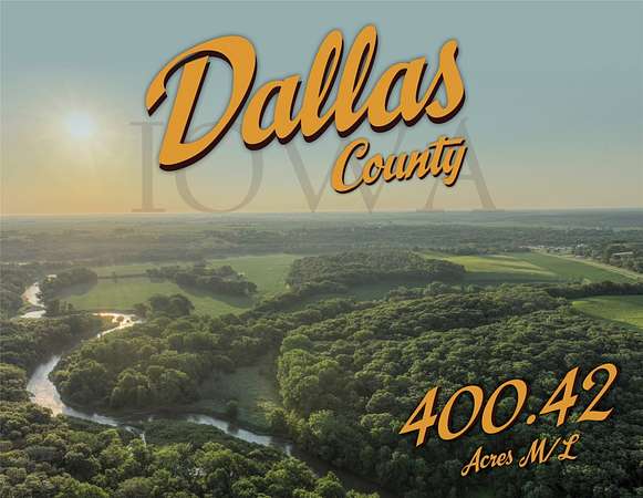 Nestled along the banks of the Racoon River and set with a truly remarkable landscape, this one-of-a-kind 400.42 acre m/l property is located only 20 minutes from the Des Moines Metro. Located NW of Redfield and off County HWY F59, this is a rare opportunity to own a large, contiguous tract of Dallas County land. This farm is the ultimate lifestyle property with scenic building sites, secluded recreational acres, Raccoon River access, and high-quality tillable acres. The southern portion of the property features an elevated ridge, offering panoramic views of the tillable ground and surrounding landscape-an ideal location for your dream home or weekend retreat. Utilities are in place with Xenia Rural Water and Alliant Energy along the north side of paved Highway 59/310th Street. The farm has substantial income with 190.5 cropland acres under lease providing $57,150 in annual income. The tillable acres carry an impressive 80.1 CSR2 and include high producing Nevin Silty Clay Loam and Dockery-Quiver Silt Loams. The farm operator has utilized cover crops to build biomass and improve soil health. Additionally, 34.9 acres are enrolled in the Conservation Reserve Program (CRP) paying $5,743 annually and expiring in 2032. The CRP acres are enrolled in CP-1 - Establishment of Permanent Introduced Grasses and Legumes. The farm also has an optional hunting lease paying $5,000 per year. *The seller holds an active real estate license in the State of Iowa. Visit our website.