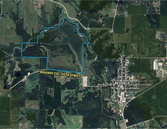 From Redfield, head west on County Highway 59/310th Street for 0.5 miles until reaching the property. The property is located on the north side of the road.