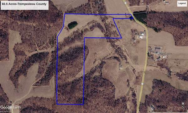 60.5 Acres located in the hills of Trempealeau County near Blair. This property features owned access from County Rd S and has Fly Creek flowing through the property providing a year-round water source for wildlife. An excellent combination of tillable and wooded ground ideal for a top-notch hunting property. 2 Large ridges encompass the property and provide excellent bedding areas and hot spots during the rut! An area of the property has been utilized as pens for a licensed whitetail deer farm. This can be continued or decommissioned at the buyer's wishes. An exterior 8' tall fence runs the Southern and Easterly property lines, this fence has been used to help the owner manage the free range deer herd. This is an excellent property that will provide fantastic hunting opportunities.